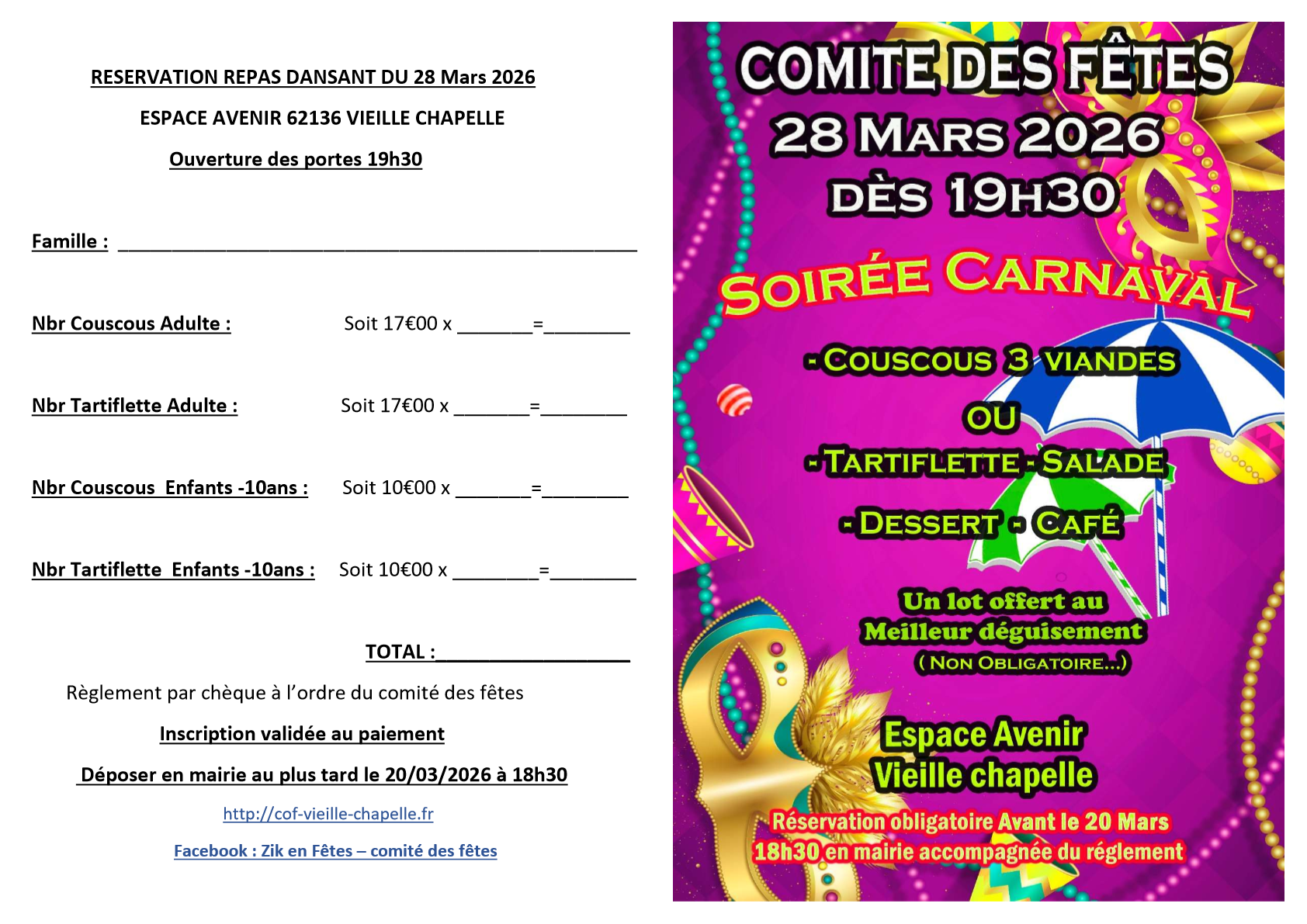 Le Comité des Fêtes de Vieille Chapelle est une association loi 1901, animée par une équipe dynamique de bénévoles.